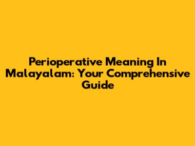 Perioperative Meaning In Malayalam: Your Comprehensive Guide