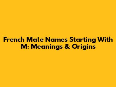 French Male Names Starting With M: Meanings & Origins