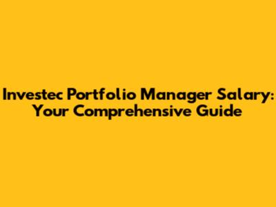 Investec Portfolio Manager Salary: Your Comprehensive Guide