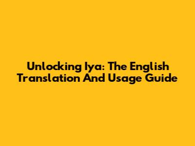 Unlocking 'Iya': The English Translation And Usage Guide