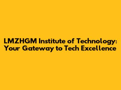 Unveiling LMZHGM Institute of Technology: A Comprehensive Overview
