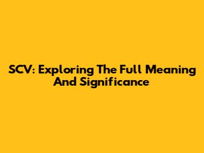 SCV: Exploring The Full Meaning And Significance