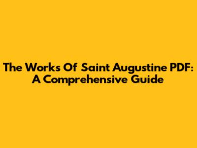 The Works Of Saint Augustine PDF: A Comprehensive Guide
