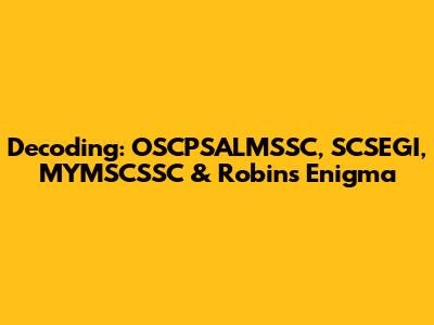 Decoding: OSCPSALMSSC, SCSEGI, MYMSCSSC & Robin's Enigma
