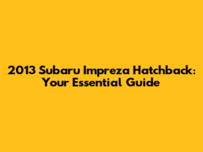 2013 Subaru Impreza Hatchback: Your Essential Guide