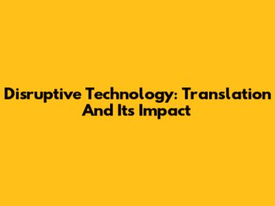 Disruptive Technology: Translation And Its Impact