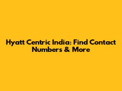 Hyatt Centric India: Find Contact Numbers & More