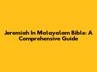 Jeremiah In Malayalam Bible: A Comprehensive Guide