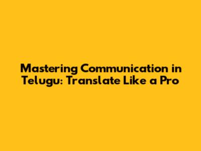 Tips and Tricks for Seamless Telugu Communication Translation