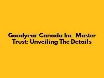 Goodyear Canada Inc. Master Trust: Unveiling The Details