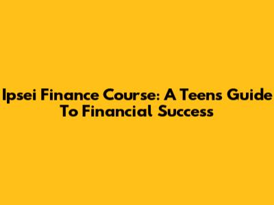 Ipsei Finance Course: A Teen's Guide To Financial Success