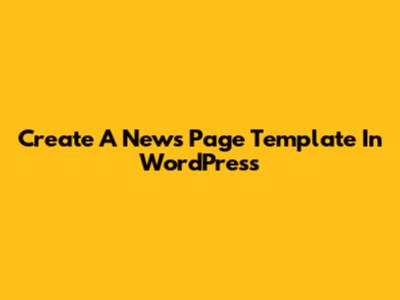 Create A News Page Template In WordPress
