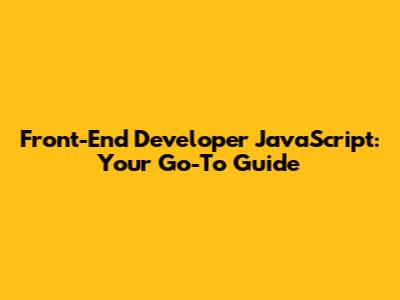 Front-End Developer JavaScript: Your Go-To Guide
