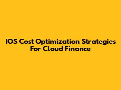 IOS Cost Optimization Strategies For Cloud Finance
