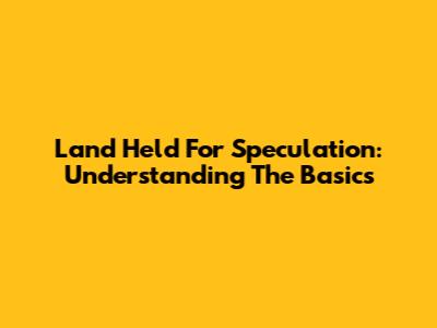 Land Held For Speculation: Understanding The Basics