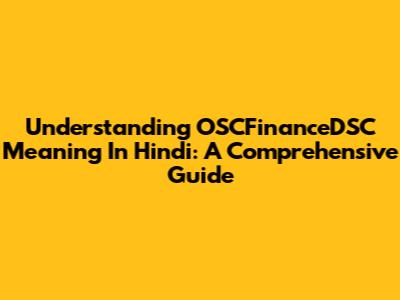 Understanding OSCFinanceDSC Meaning In Hindi: A Comprehensive Guide
