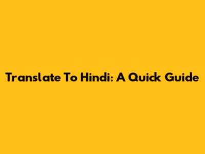 Translate To Hindi: A Quick Guide