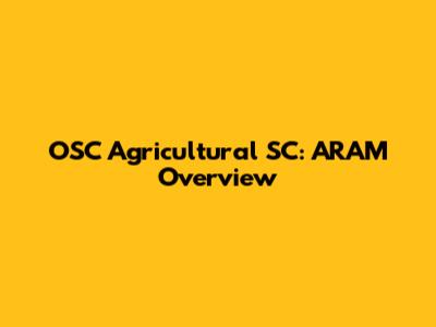 OSC Agricultural SC: ARAM Overview