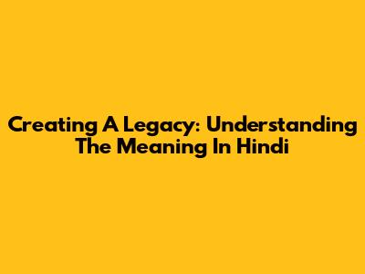 Creating A Legacy: Understanding The Meaning In Hindi