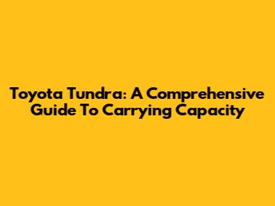 Toyota Tundra: A Comprehensive Guide To Carrying Capacity