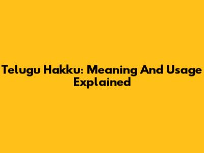 Telugu Hakku: Meaning And Usage Explained