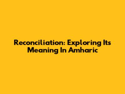 Reconciliation: Exploring Its Meaning In Amharic