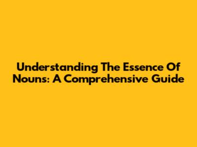 Understanding The Essence Of Nouns: A Comprehensive Guide
