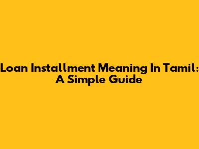 Loan Installment Meaning In Tamil: A Simple Guide