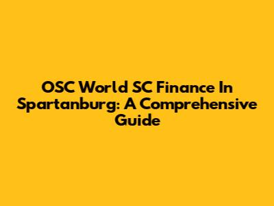 OSC World SC Finance In Spartanburg: A Comprehensive Guide