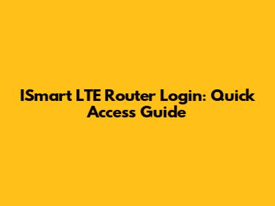 ISmart LTE Router Login: Quick Access Guide