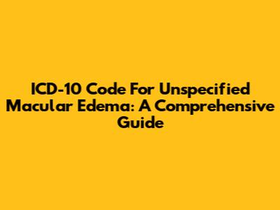ICD-10 Code For Unspecified Macular Edema: A Comprehensive Guide