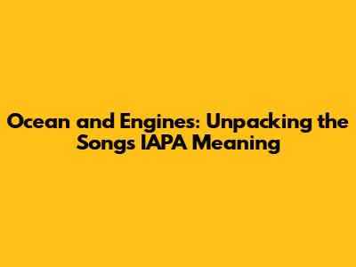 Have you ever listened to a song that just resonated with you, but you couldn't quite put your finger on why? Well, that's how many people feel about "Ocean and Engines." It's a song that's both beautiful and enigmatic, leaving listeners wondering about its deeper meaning. This article dives deep into exploring the IAPA meaning of "Ocean and Engines," dissecting its lyrics, themes, and interpretations. So, buckle up, music lovers, and let's get started!