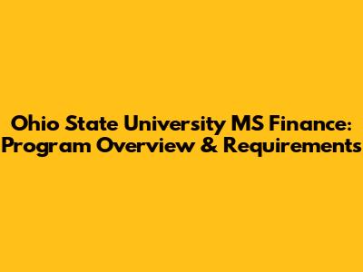 What is Ohio State MS Finance Program About?