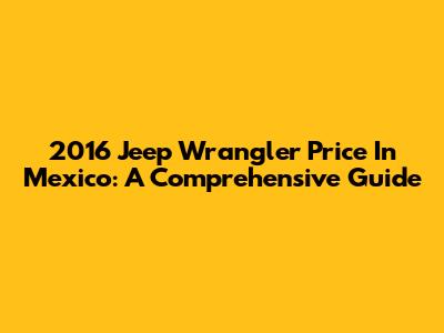 2016 Jeep Wrangler Price In Mexico: A Comprehensive Guide