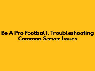 Be A Pro Football: Troubleshooting Common Server Issues