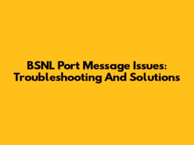 BSNL Port Message Issues: Troubleshooting And Solutions