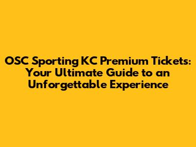 Unveiling the World of OSC Sporting KC Premium Tickets