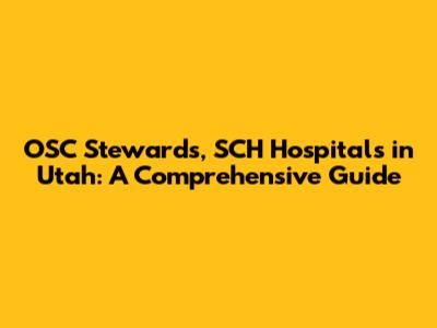 Hey guys, let's dive into the world of OSC Stewards and SCH Hospitals in the beautiful state of Utah! If you're wondering what these acronyms mean or how they relate to healthcare, you've come to the right place. This article will break down everything you need to know, from the basics to the nitty-gritty details. So, grab a coffee (or your favorite beverage), sit back, and let's get started. We're going to cover a lot of ground, ensuring you have a solid understanding of these key players in Utah's healthcare landscape. Whether you're a healthcare professional, a patient, or simply curious, this is your go-to guide. We'll explore the roles, responsibilities, and significance of OSC Stewards and SCH Hospitals, providing you with valuable insights and information. Get ready to become an expert on the subject, or at least, be able to hold your own in a conversation about it!