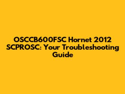 Common Problems & Troubleshooting Tips for the OSCCB600FSC Hornet 2012 SCPROSC