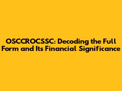 Why OSCCROCSSC Matters in the Financial World