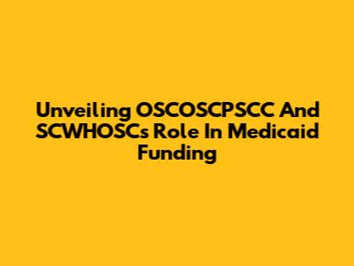 Unveiling OSCOSCPSCC And SCWHOSC's Role In Medicaid Funding