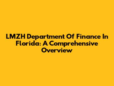 LMZH Department Of Finance In Florida: A Comprehensive Overview