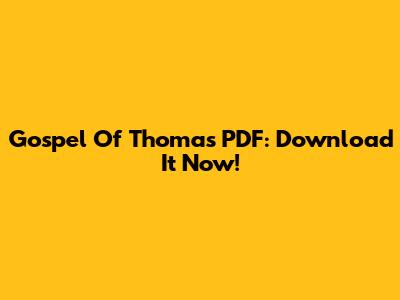 Gospel Of Thomas PDF: Download It Now!