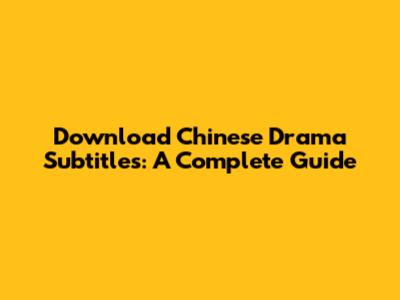 Download Chinese Drama Subtitles: A Complete Guide