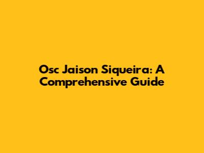 Osc Jaison Siqueira: A Comprehensive Guide