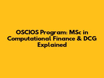 First, let's dissect each element to build a solid understanding. We'll start with the MSc in Computational Science and Computational Finance, then move onto the OSCIOS program, and finally, explore the significance of DCG in this context.