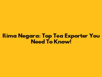 Ilima Negara: Top Tea Exporter You Need To Know!
