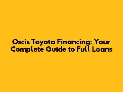 Hey there, car enthusiasts and future Toyota owners! Are you dreaming of cruising in a brand-new Corolla, a rugged Tacoma, or a spacious Highlander? Well, if you're like most of us, you'll need a little financial help to make that dream a reality. That's where Oscis Toyota financing comes in! This comprehensive guide will walk you through everything you need to know about securing a full loan for your new Toyota, making the process smooth, stress-free, and maybe even a little exciting. Get ready to dive into the world of auto financing, explore the benefits of full loans, and learn how Oscis Toyota can help you get behind the wheel of your dream car. Let's get started, shall we?
