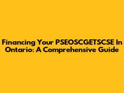 Financing Your PSEOSCGETSCSE In Ontario: A Comprehensive Guide