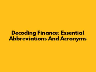 Decoding Finance: Essential Abbreviations And Acronyms